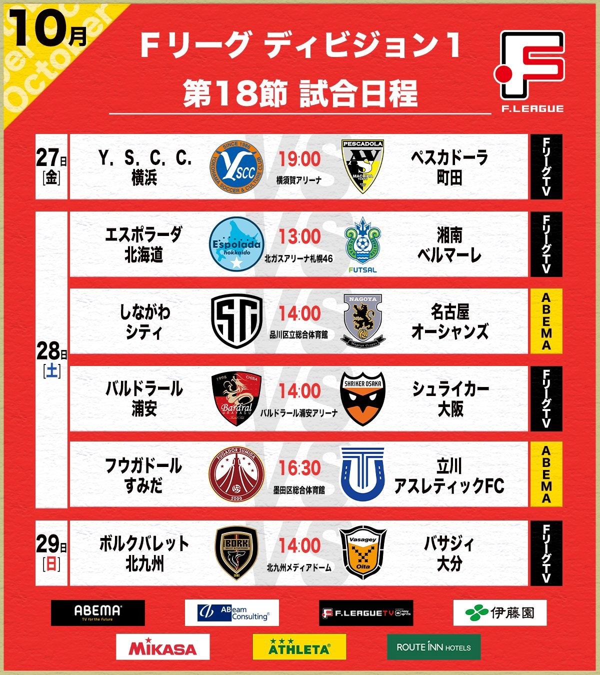 14:00 キックオフ 浦安 vs. 大阪 ▶▶https://fleague.stores.play.jp/lives/b468ad6a-e67f-48ec-93a7-2f9caebb3642