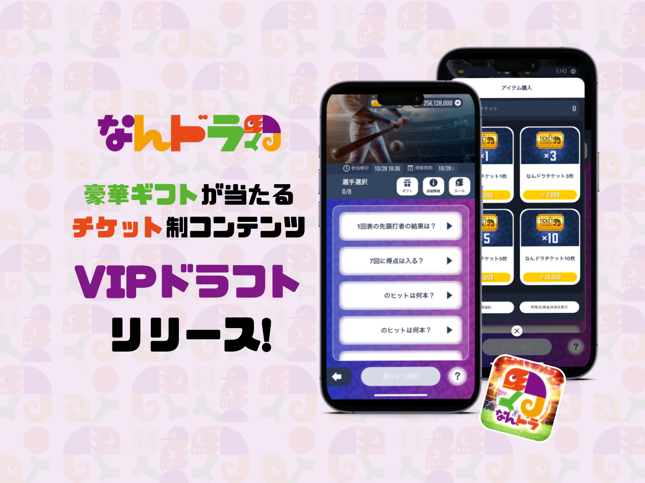今回リリースされた「VIPドラフト」は、有料チケットを必要枚数購入して参加する予想コンテンツです。