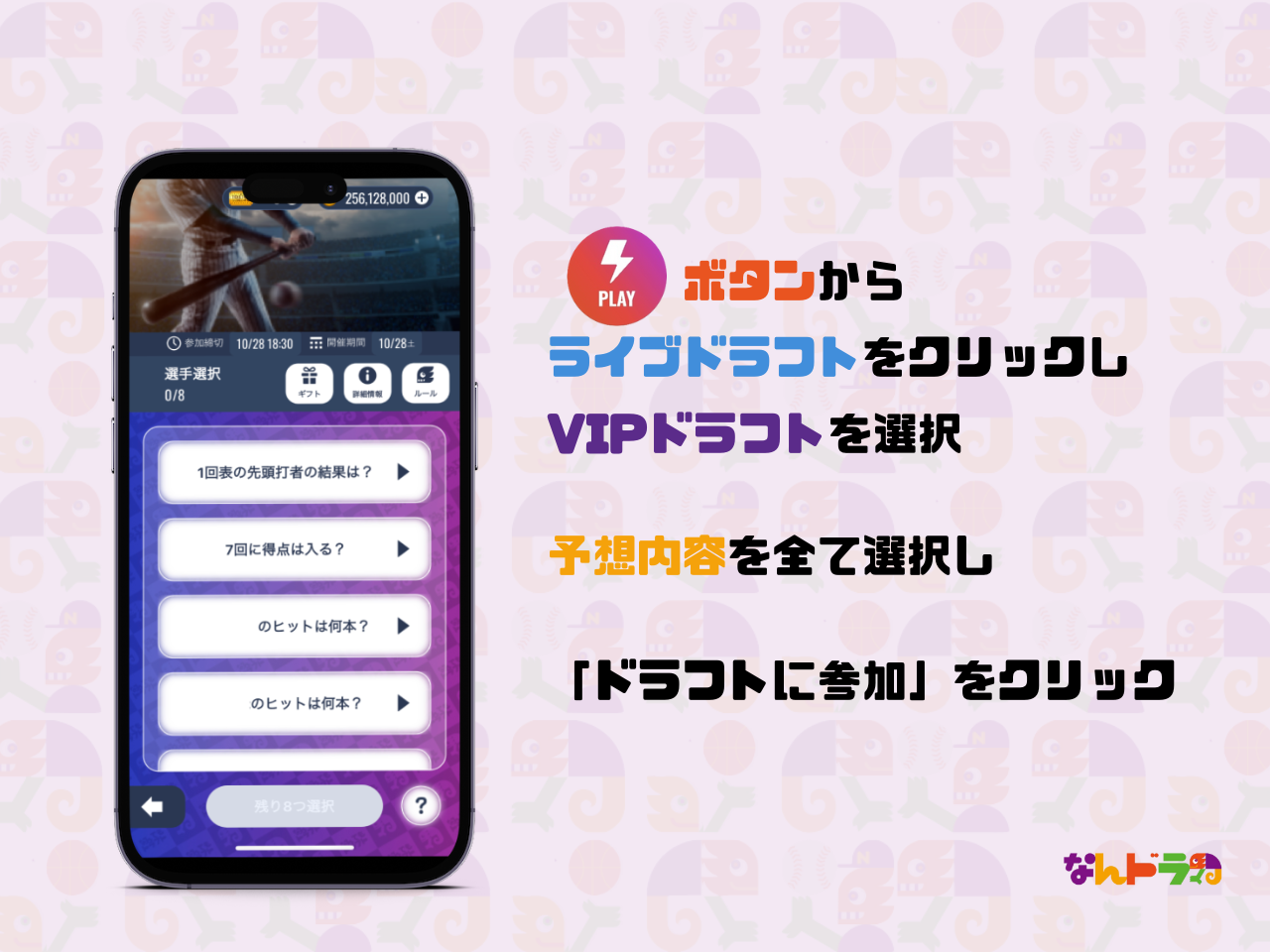 10月28日(土)のプロ野球 シリーズ戦を対象にVIPドラフトを開催