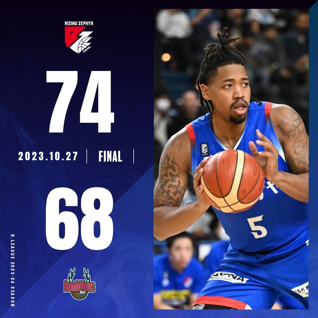 2023年10月27日(金)に開催されました【ライジングゼファーフクオカvs.バンビシャス奈良】において“福岡74-68奈良”の結果となりましたことお知らせいたします。