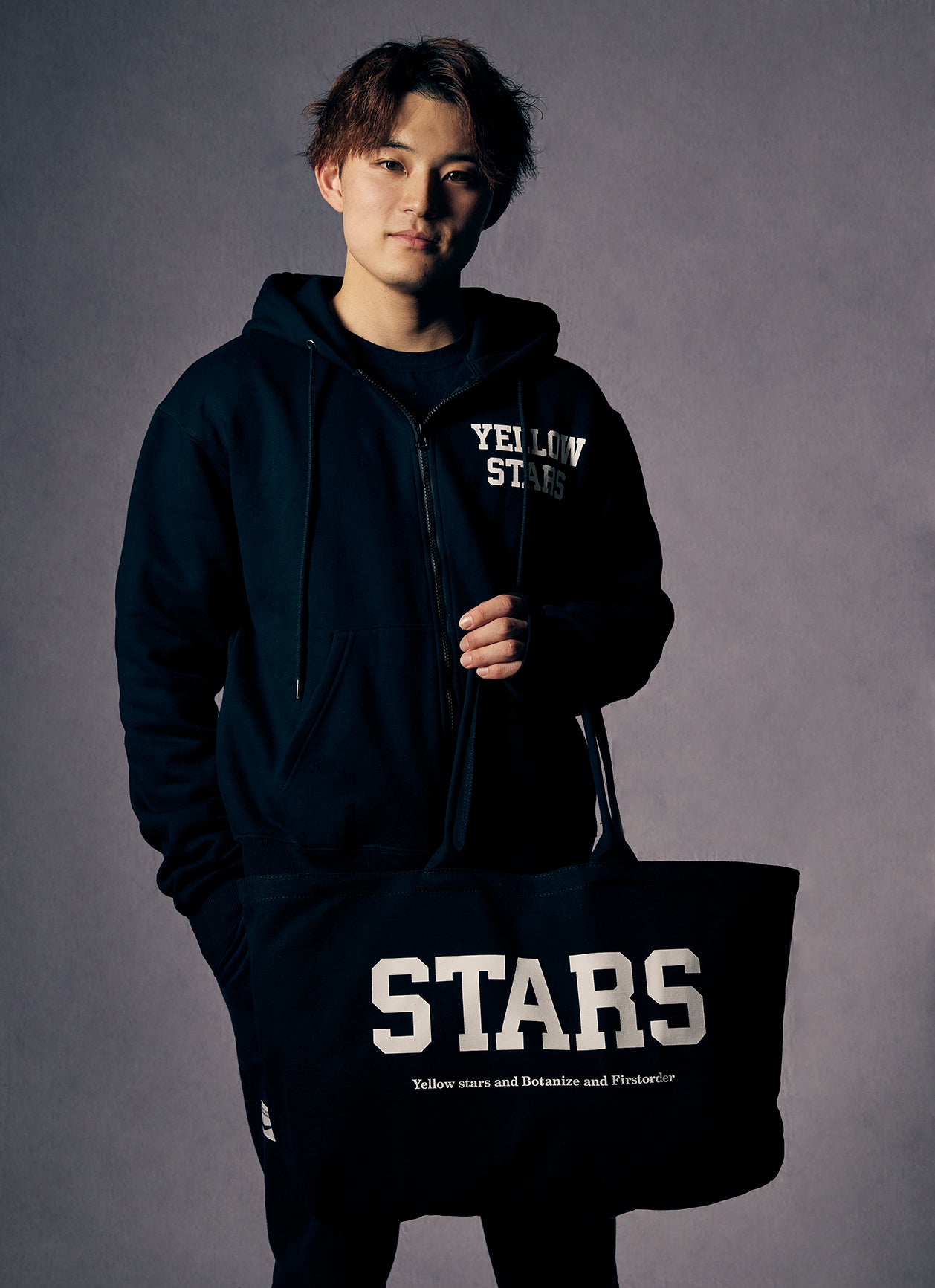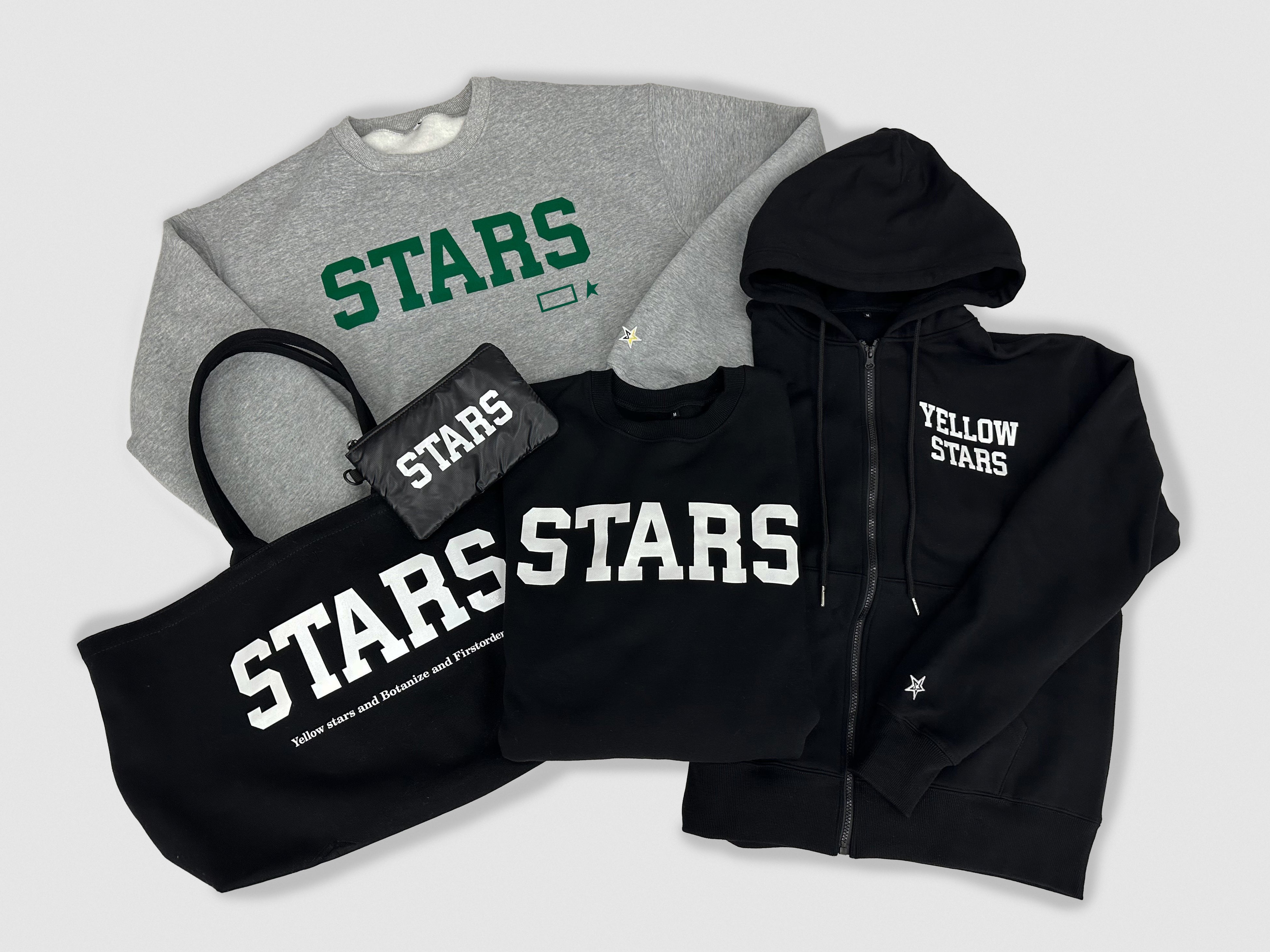 今回のコラボレーションのために特別に BOTANIZE 横町健 と FIRSTORDER 岡田喜則 により、デザインされた “STARS” ロゴ。そのロゴが大きくプリントされたスウェットをはじめ、ユニフォームの上からも羽織りやすいジップパーカー、また観戦に便利な大きめで丈夫なトートバッグ、小物を入れるポーチなど、全てのアイテムにSTARSロゴが配置され、会場での応援だけでなく、ファッションアイテムとしても使用できるよう、全アイテムオリジナルボディで製作された、特別なアイテムとなっております。