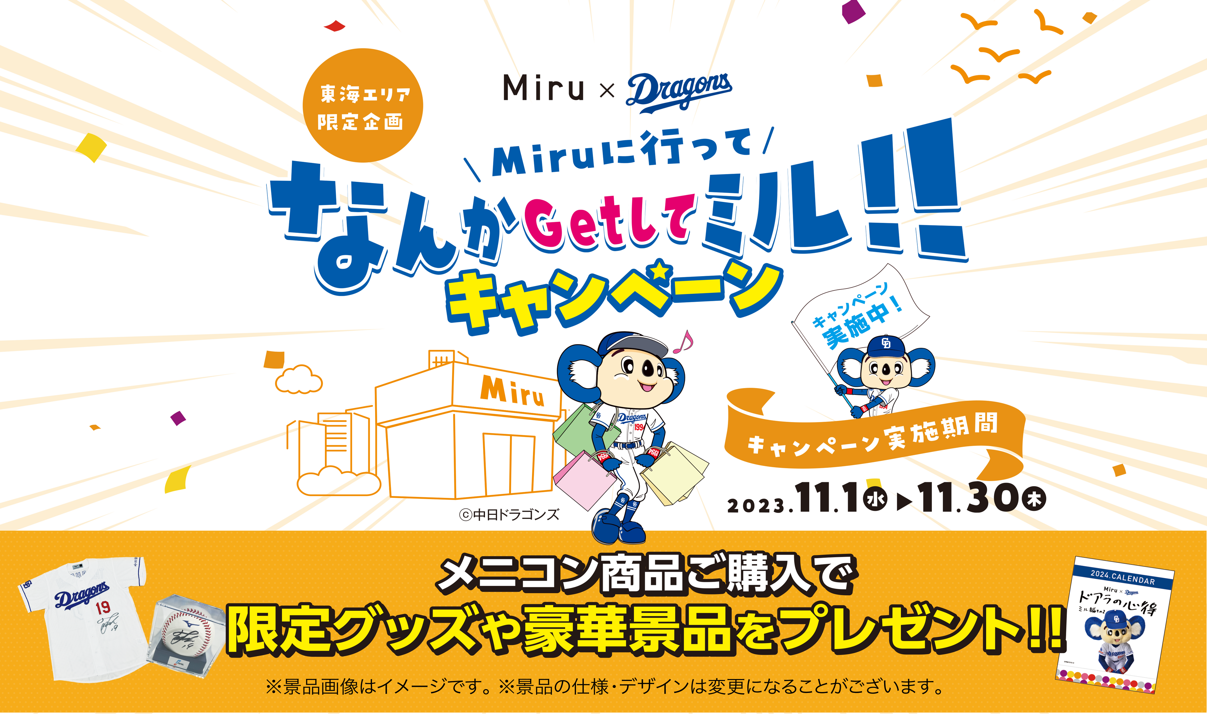 ■キャンペーン名称:Miru×中日ドラゴンズ Miruに行ってなんかGetしてミル!!キャンペーン