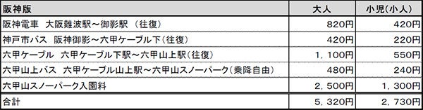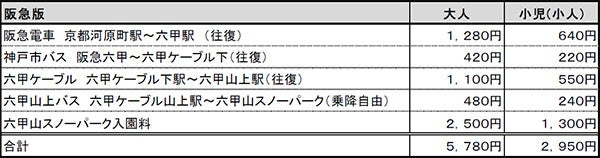 阪急版:阪急全駅(神戸高速線を除く。)から六甲駅までの往復乗車及び下記の共通区間
