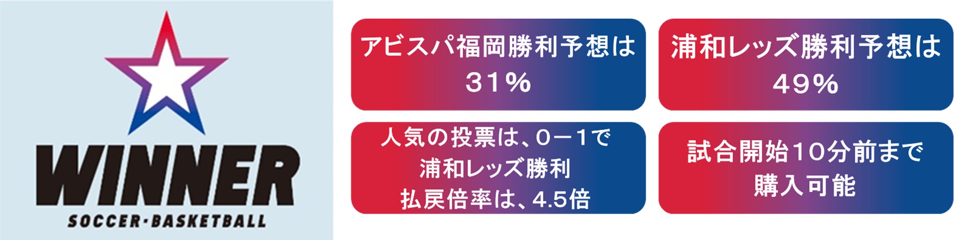 なお、「WINNERサッカー1試合予想(アビスパ福岡 vs 浦和レッズ)」は、11月4日(土)12時55分まで販売いたします*。国立競技場で開催されるルヴァンカップ決勝を「WINNER」と併せてぜひお楽しみください。
