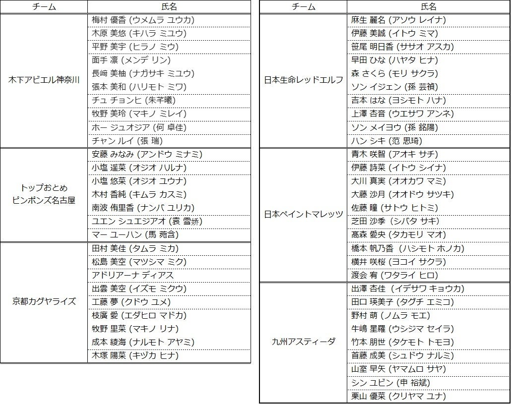 Tリーグでは、以下の通り、選手登録抹消、及び、選手登録が決まりましたのでお知らせいたします。