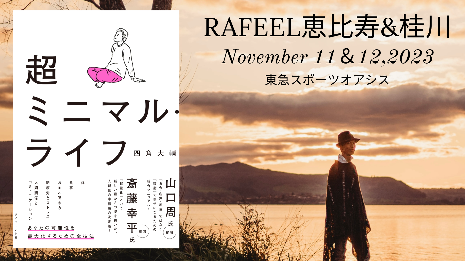 四角大輔さんの著書「超ミニマル・ライフ」が2023年10月4日に発売され、オアシスがその一部のエクササイズを監修しました。四角大輔さんが実践している生活スタイルは「ウェルネスの追求」です。本の中で紹介されている運動と食事に対する技術を主なテーマに、昨年ベストセラーとなった「超ミニマル・主義」についても触れます。心と身体を自分らしく健やかなものにしたいと願う方を応援しているオアシスは、四角大輔さんが実践している究極の技法を多くの方に届けたいという想いでイベントを開催します。オアシスの会員様だけではなく、セルフプロデュースに関心のある方や、疲れやストレスを抱えている方など、どなたでもご参加可能です。