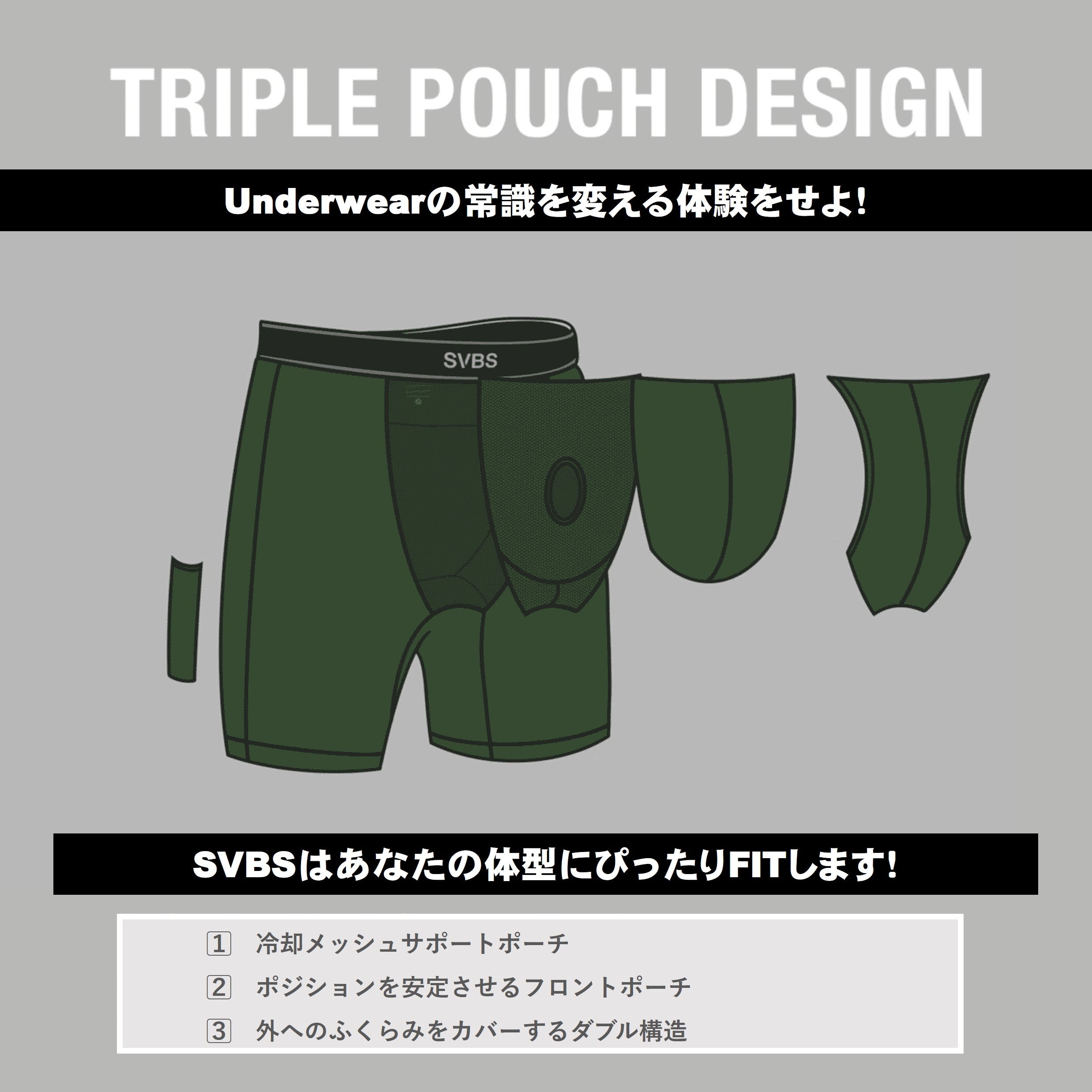 【トリプルポーチデザイン】股間部分の蒸れと摩擦を解消し、快適な履き心地を。