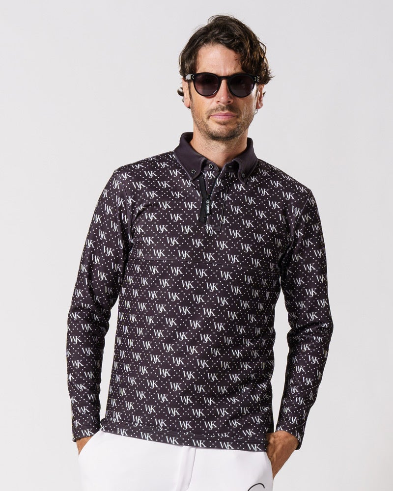 インパクトのあるロゴ入りテキスタイルを使用したロングスリーブポロシャツ。総柄プリントで斬新な仕上がりに。 ボタンダウン仕様の衿が全体感なイメージに締まり感を与える。