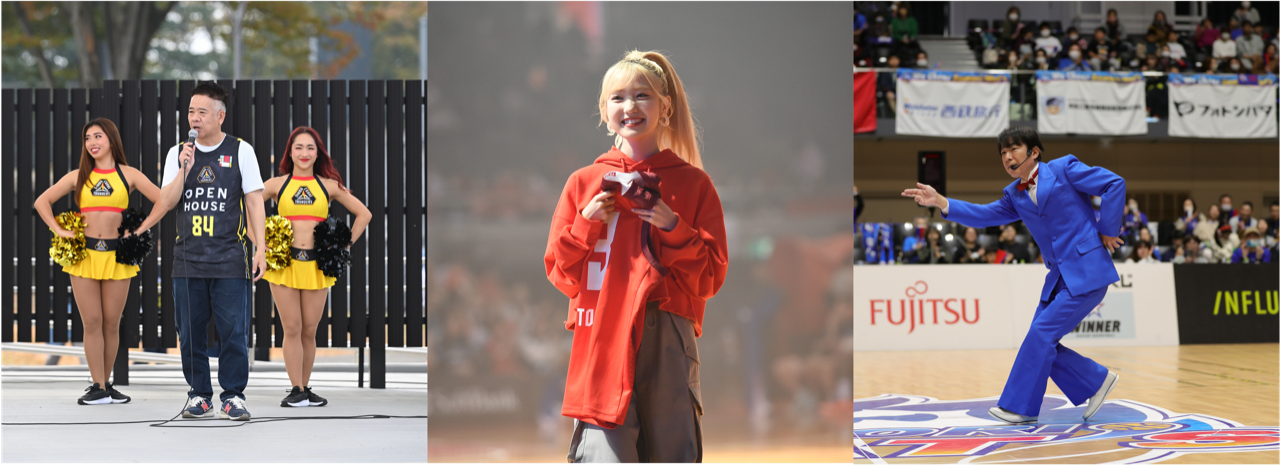 先週末の「B.FES 2023」では、ゲストに本田仁美さん(AKB48)、FUJIWARA原西孝幸さん(お笑い芸人)、ダンディ坂野さん(お笑い芸人)などが登場し、バスケの試合はもちろんのこと、今までバスケに関心のなかった方々にも祭典を楽しんでいただくことができました。