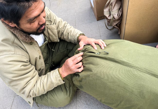昔、寝袋をストーブに間違って付けちゃったら、大きな穴が空いて羽毛が白銀の世界みたいに舞ったんですよ。
