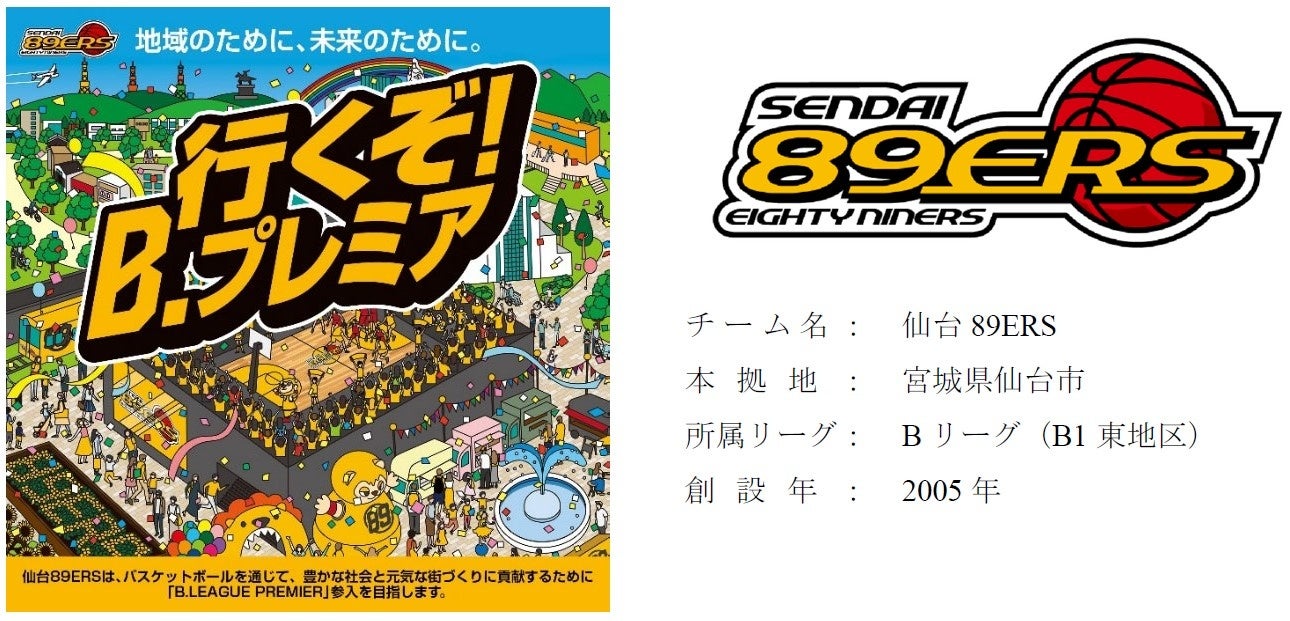 当社は仙台89ERS の「バスケットボールを通じて、豊かな社会づくり・元気な仙台の街づくりに貢献する」という企業理念と、東日本大震災によるチーム解散の危機を乗り越えトップリーグであるB1リーグで活躍する姿に共感し、祖業の地である宮城県仙台市でプロバスケットボールチームの運営を通じて支援していくことといたしました。