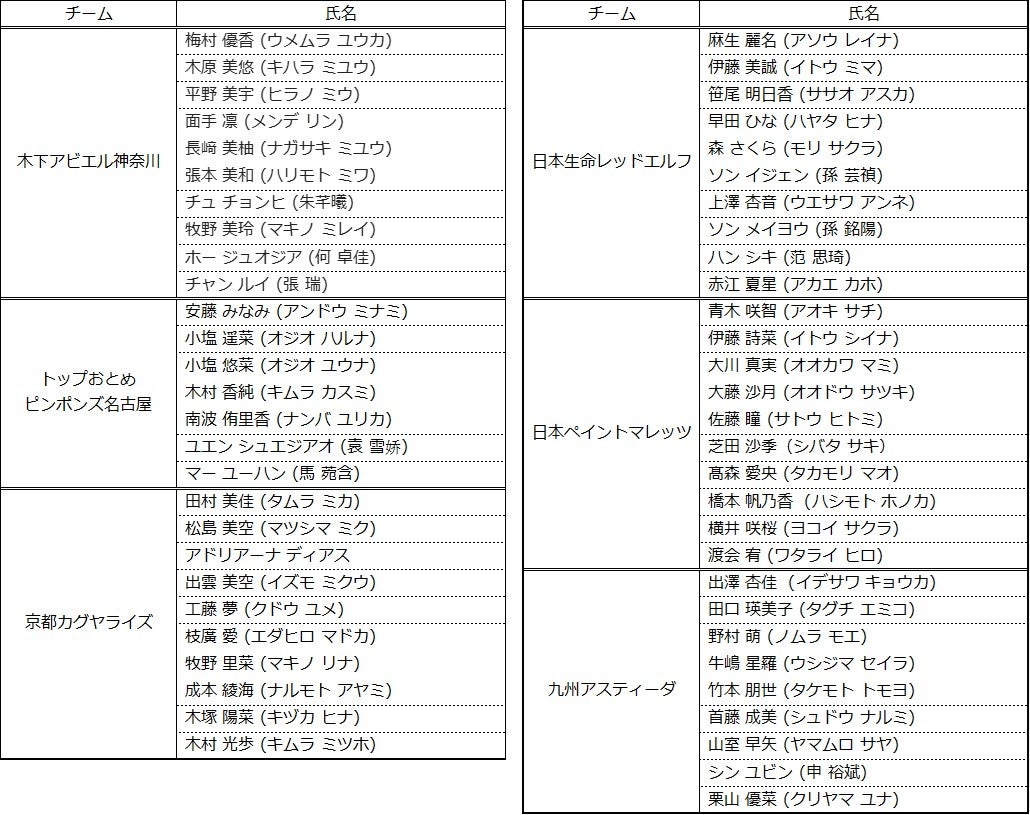 Tリーグでは、以下の通り、選手登録抹消、及び、選手登録が決まりましたのでお知らせいたします。