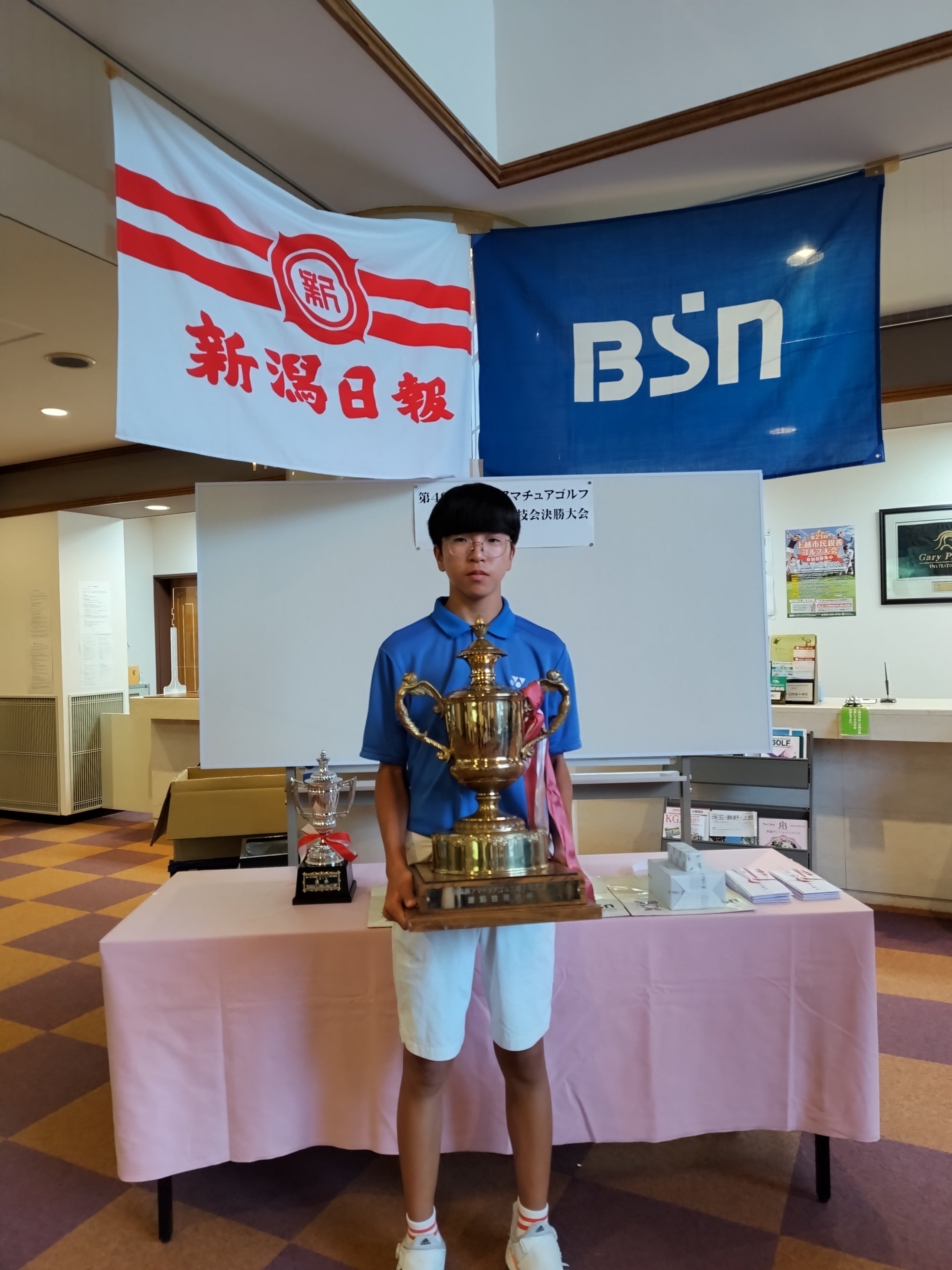 今大会は新潟県のアマチュアゴルファーナンバーワンを決める試合ですから、中学生だけの試合ではありません。高校生も大学生も大人も156人が出場した試合で中学生が頂点に立ったわけです。同大会で中学生が優勝するのは史上2人目の快挙でした。