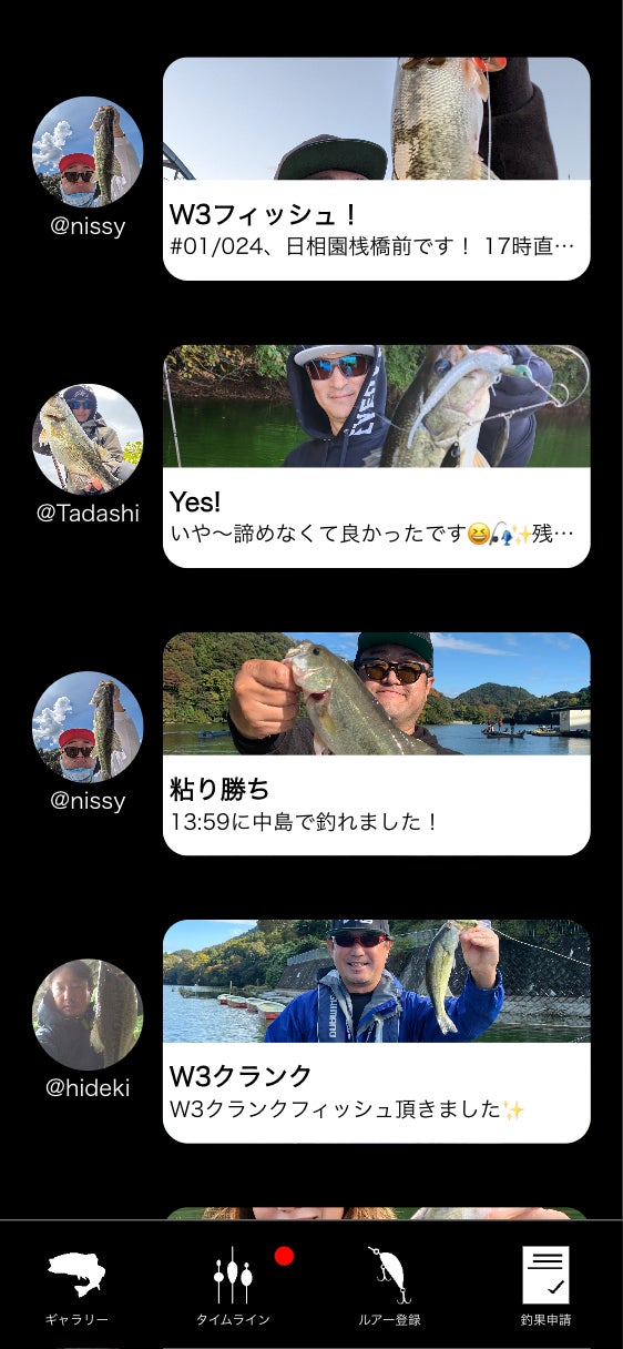 BCLアプリに登録すると、タイムラインから大会での釣果が確認できます。