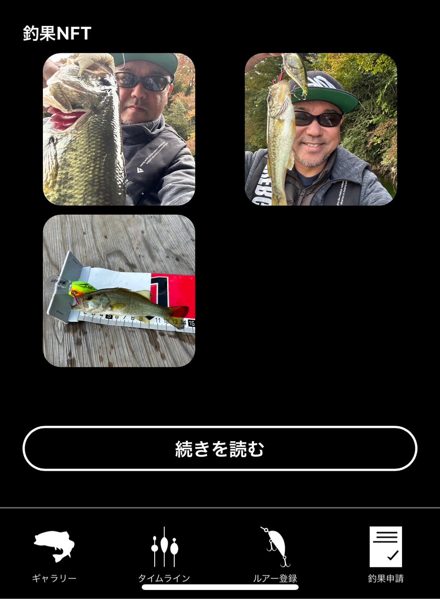 申請された釣果は、サイズ確認など運営側の審査を通過するとNFT化されます。NFTは自身のギャラリーにアップされアングラーの大会にかける熱量を可視化して証明します。
