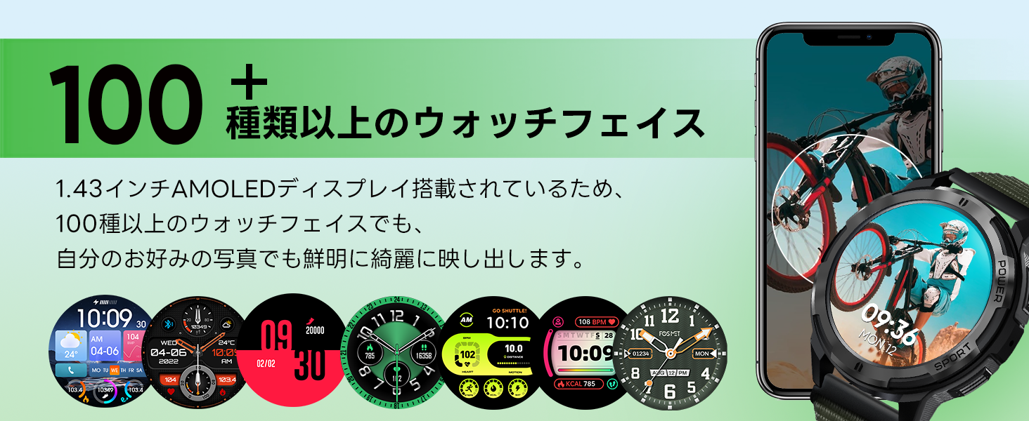 FOSMET H5 スポーツスマートウォッチは極限環境での使用に限定されず、スマートフォンの日常的な機能もサポートできます。着信、メッセージ通知、ソーシャルメディアリマインダーを受け取ることができます。また、豊富なウォッチフェイスを無料で切り替えられ、様々なシーンに利用できます。
