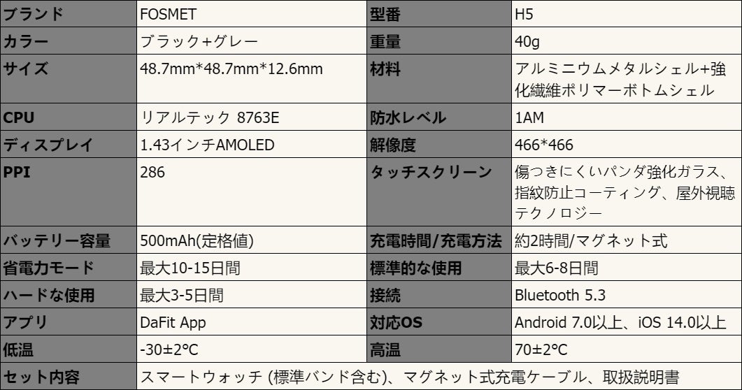 FOSMET H5 スマートスポーツウォッチは冒険家の最高のパートナーであり、不凍、耐寒、耐高温の特性を備えております。 登山、スキー、砂漠探検など、過酷な気候でも、-30°C~70°C の温度範囲で正常に動作できます。