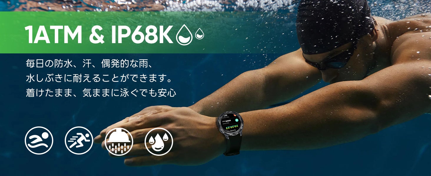 FOSMET H5 スポーツスマートウォッチは IP68 防水性能を備えており、水深1.5メートルで使用しても損傷しないことが保証されています。雨が降っても、水に濡れても大丈夫です!