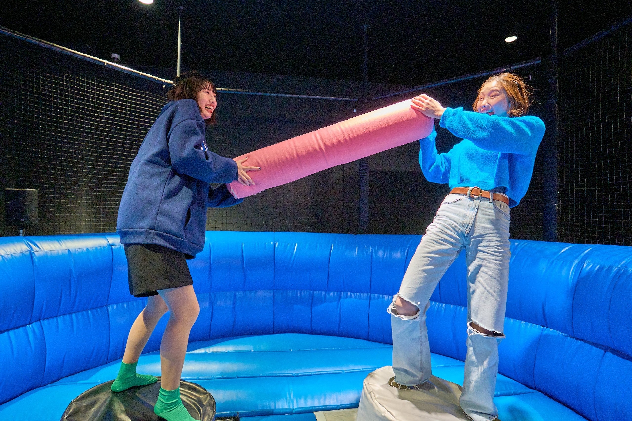 体を動かしながらまるでバラエティ番組に参加しているような体験ができる新感覚のバラエティスポーツ施設です。学生グループやファミリーのお客さまから、「全力ではしゃげる施設」と多くの支持を得ています。