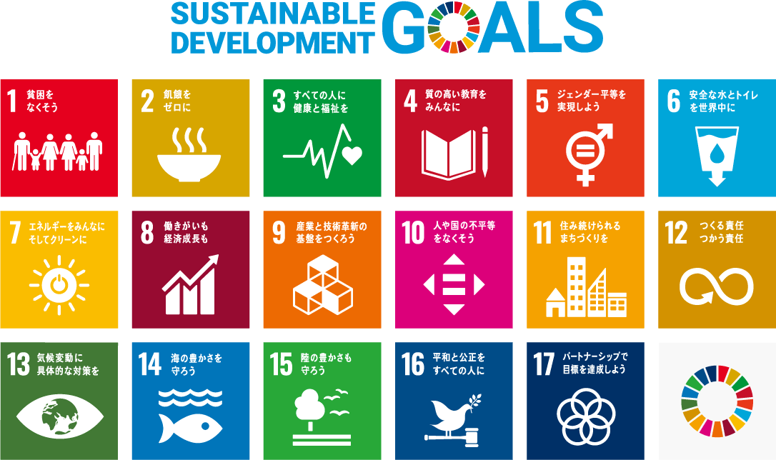 持続可能な開発目標SDGs(Sustainable Development Goals)は、2015年9月に国連サミットの加盟国の全会一致で採択され、「持続可能な開発のための2030アジェンダ」に記載された、2030年までに持続可能でよりよい世界を目指す国際目標です。地球上の「誰一人取り残さない(leave no one behind)」ことを誓い、発展途上国のみならず、先進国自身が取り組むユニバーサルなものとなっています。