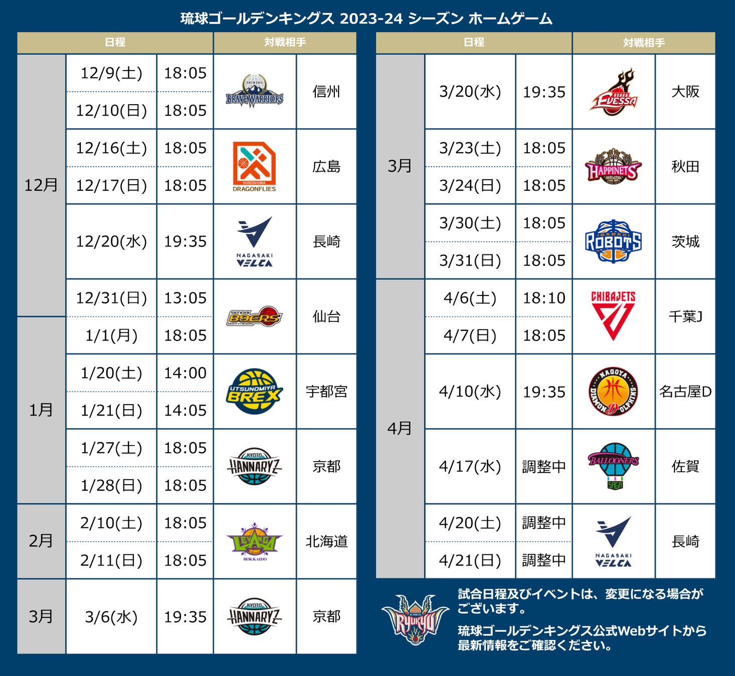 本日、2023-24シーズン後半戦(17節-31節)の試合時間が発表されました。