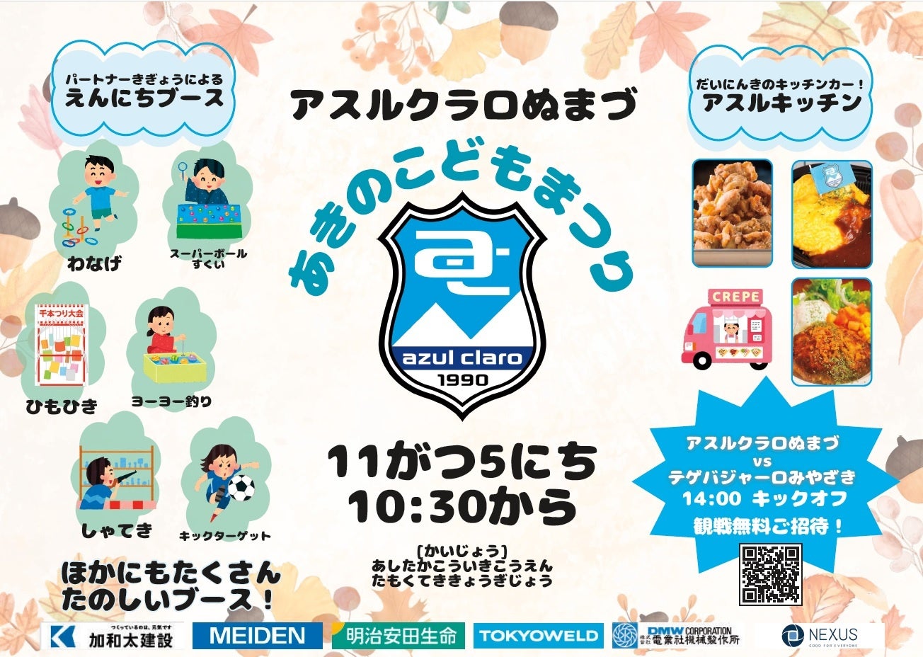 この度、株式会社トラストゲート(本社:〒160-0023 東京都新宿区西新宿、代表取締役:坂元 伸一)のグループ会社 株式会社NEXUS(本社:同上、代表取締役:同上)が、2023年11月5日(日)スポンサー契約を結ぶアスルクラロ沼津を中心に静岡県東部を盛り上げる「愛鷹5000人プロジェクト」に参加し、取り組みの一環として『あきのこどもまつり』を開催いたしました。