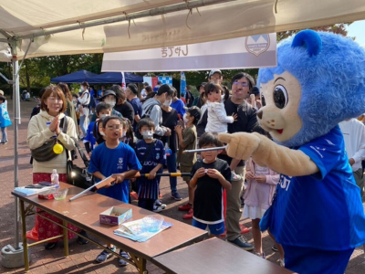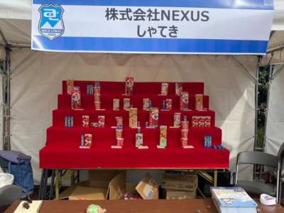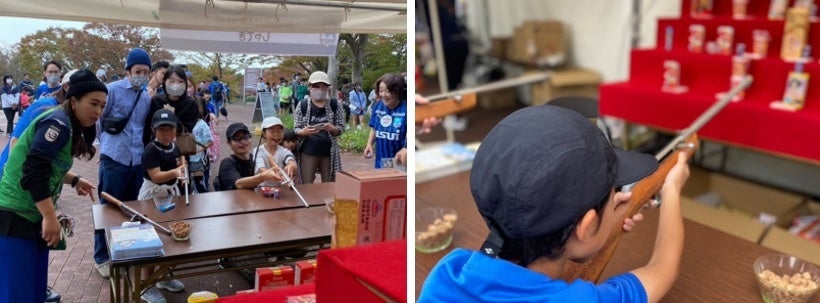 株式会社NEXUSでは、射的ゲームを展開。景品を取ろうと夢中になるお子様に混じり、アスルクラロ沼津のマスコットキャラクター「アスル君」も射的に挑戦!見事景品をゲットし、さらに盛り上げてくれました!