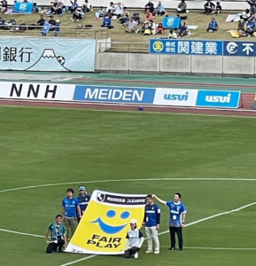 ◀アスルクラロ沼津とスポンサー企業各社で実施した、