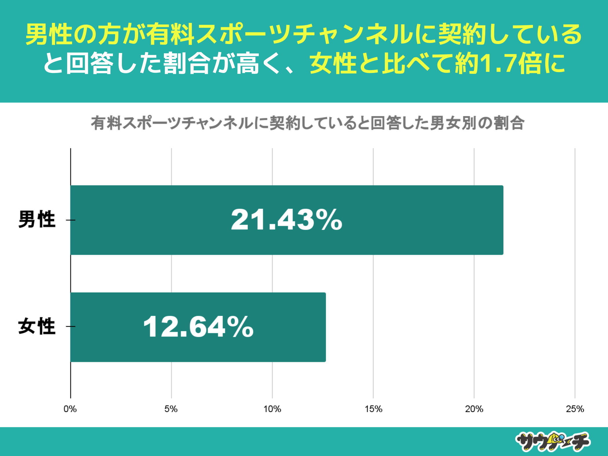 【男性の方が有料スポーツチャンネルに契約していると回答した割合が高く、女性と比べて約1.7倍に】
