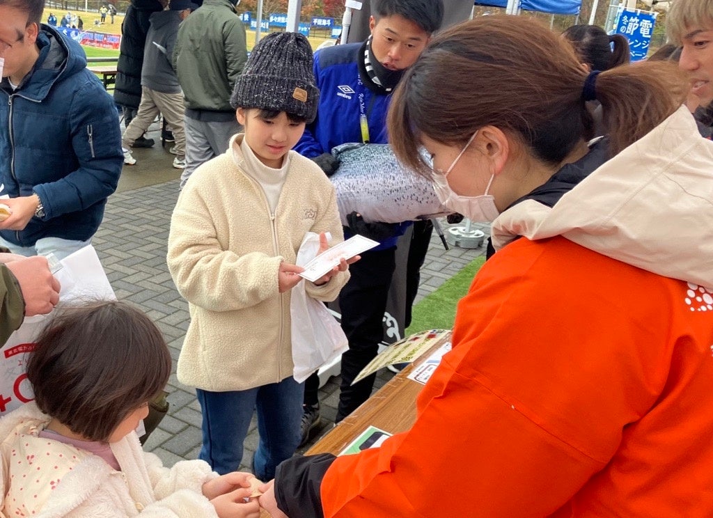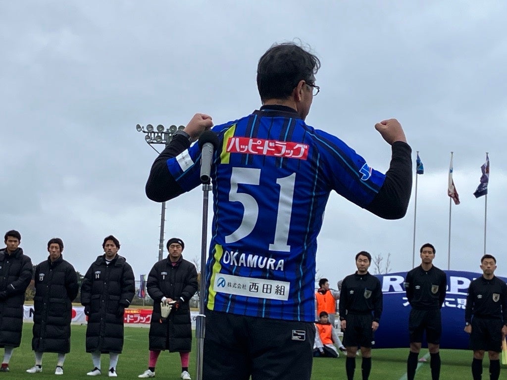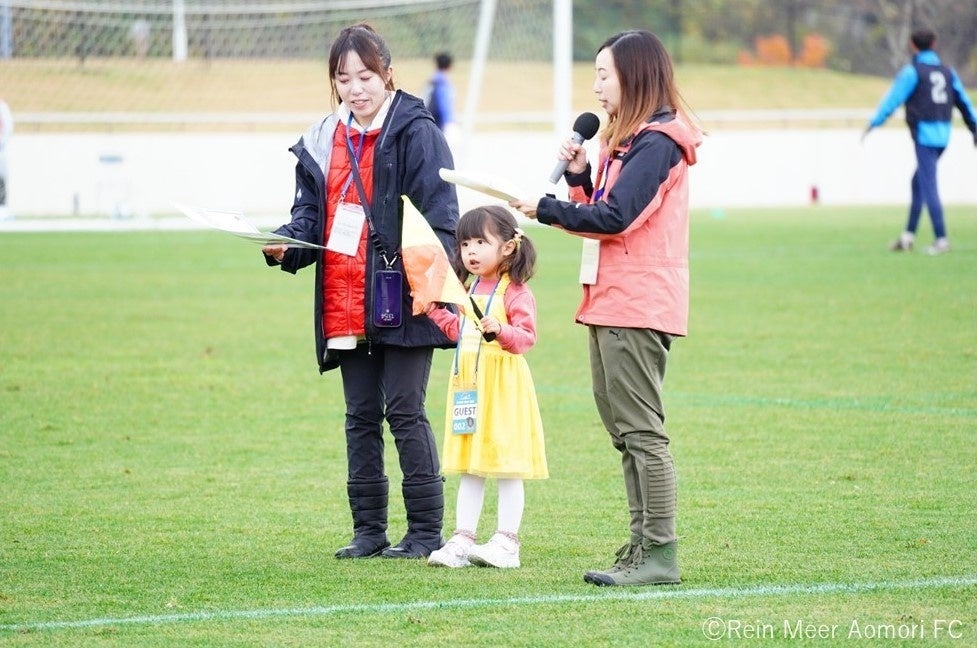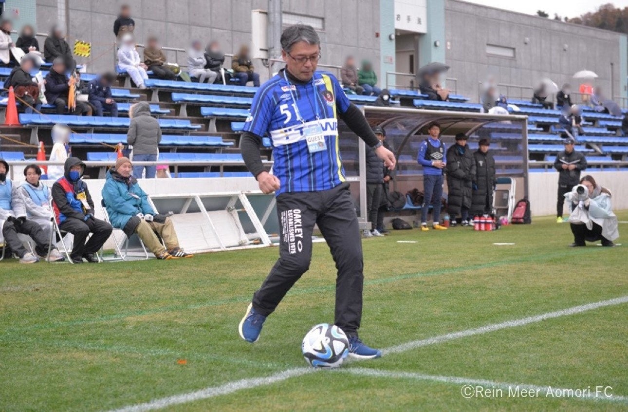 当社の本店所在地・青森県青森市をホームタウンとする、日本フットボールリーグ(JFL)に所属するサッカークラブ「ラインメール青森FC」とソニー仙台FCの試合が11月12日(日)に新青森県総合運動公園球技場にて開催されました。最高気温5.9度、小雨が降り凍えるような寒さの中、624名の観客とサポーターが来場。この日の試合は東証上場記念マッチデー。岡村恒一代表取締役社長が「恒一」にかけた「51」の背番号ユニフォームを着てキックインセレモニーを務めさせていただきました!