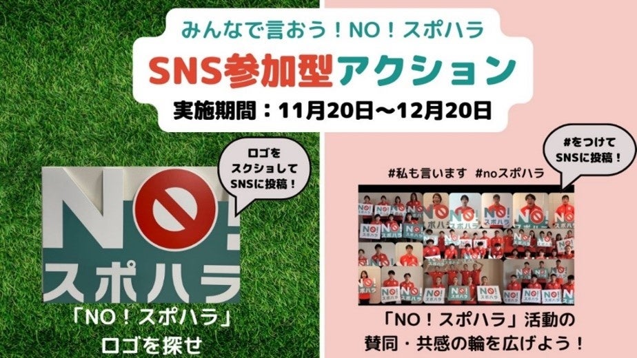 アスリートらによるメッセージ動画の公開に合わせて、”みんなで言おう!NO!スポハラ“SNSアクションをスタートします。