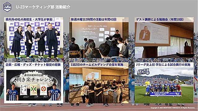 U-23マーケティング部は、単にマーケティングのスキルを学ぶ場ではなく、クラブマーケティングを通して地域社会に貢献することと、参加する学生が人として成長できることを目指しています。