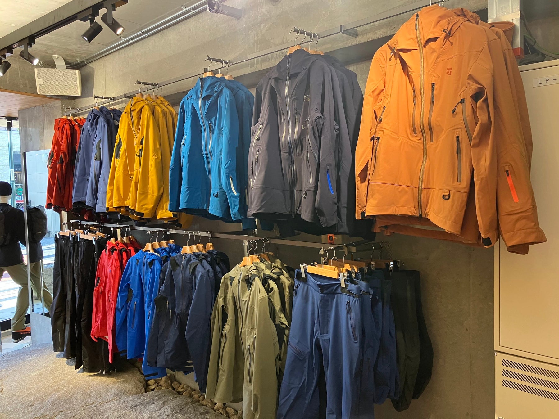 finetrack(ファイントラック)の直営店 finetrack TOKYO BASE(東京都渋谷区)に、2023年秋冬のハードシェルが勢揃い!