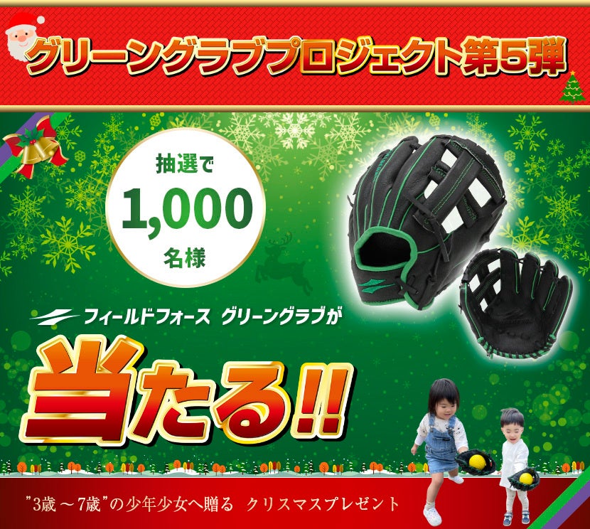 これから野球を始める選手、初めてグラブを身につける選手専用に開発した「グリーングラブ」を抽選で1,000名にプレゼント