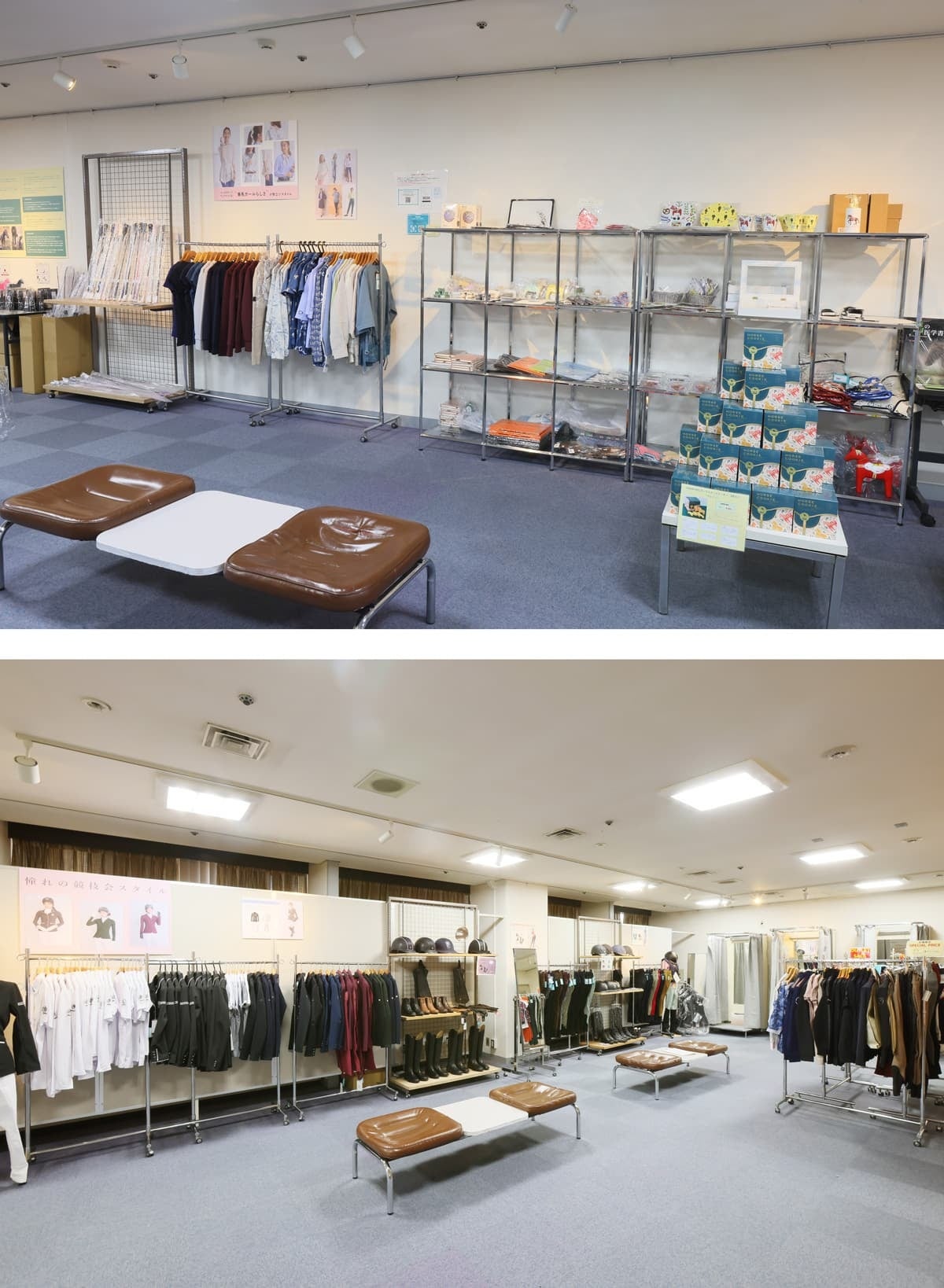 新作アイテムから限定品、セール品まで豊富に取り揃えた、見たり触れたりするだけでも楽しくなるお買い物スペースです。