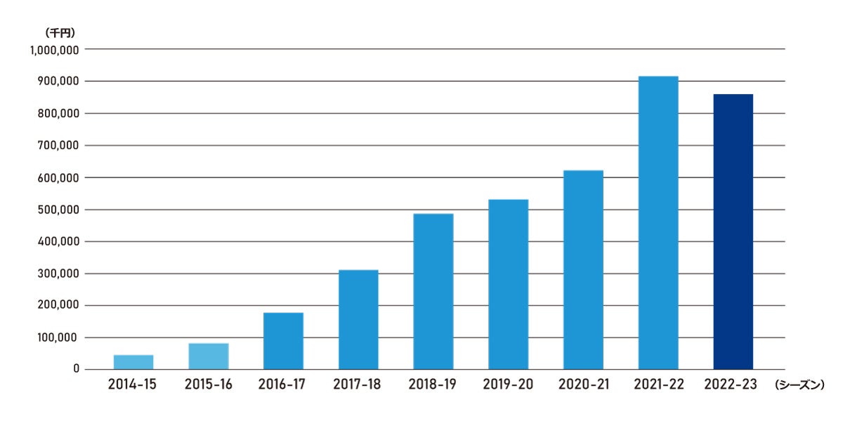 ※2018-19、2019-20、2020-21、2021-22シーズンは茨城ロボッツ・グループ全体の決算、2022-23シーズンは茨城ロボッツ・スポーツエンターテインメント単体での決算となります