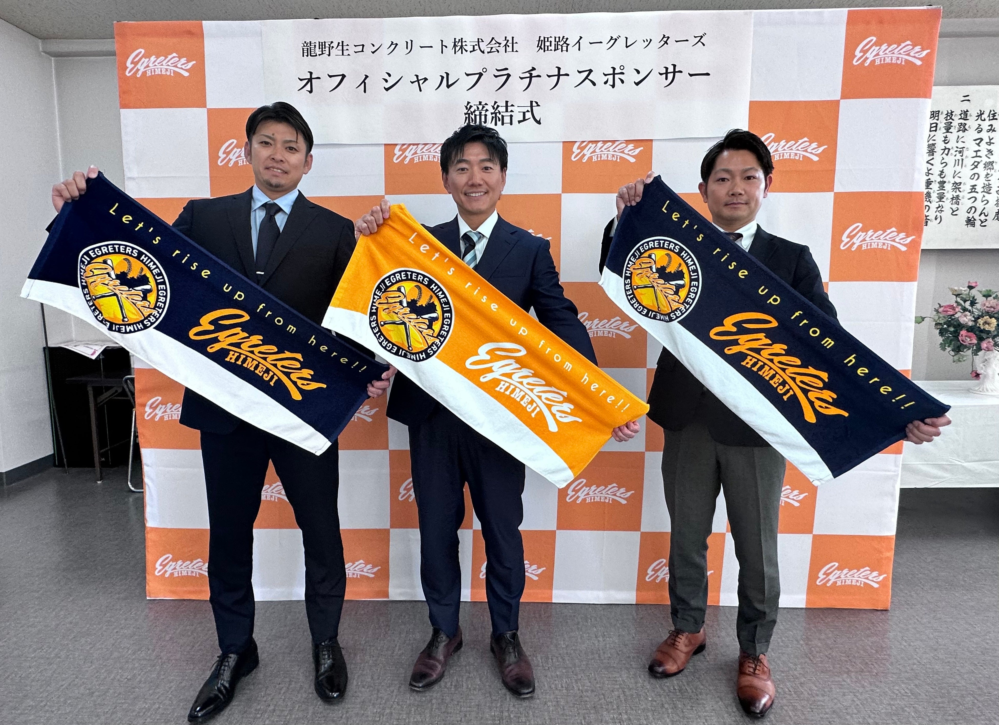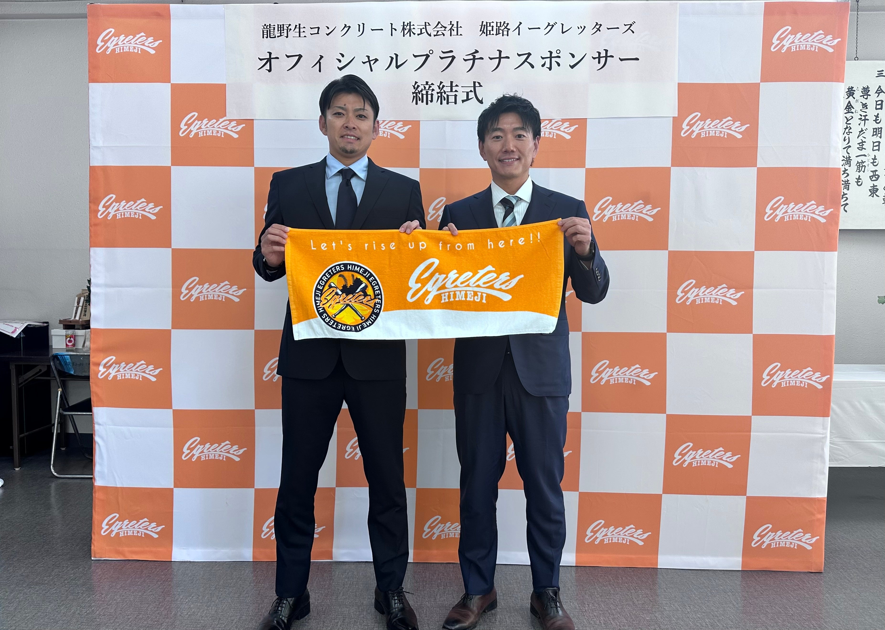 本年、さわかみ関西独立リーグへの新規参入が決定した姫路イーグレッターズは、姫路からNPB・MLBで活躍できる選手を輩出することを活動の目標に掲げられています。所属選手の夢を応援し、チームとしても今後ますますの活躍が期待される姫路イーグレッターズと、“地域活動に積極的に取り組み子どもたちの夢を応援する”龍野生コンクリートの姿勢を重ね、より身近で応援したいと感じ、このたびの契約にいたりました。今後もスポーツを通じて社会貢献を実践し、チームや選手とともに企業としてさらに成長してまいります。