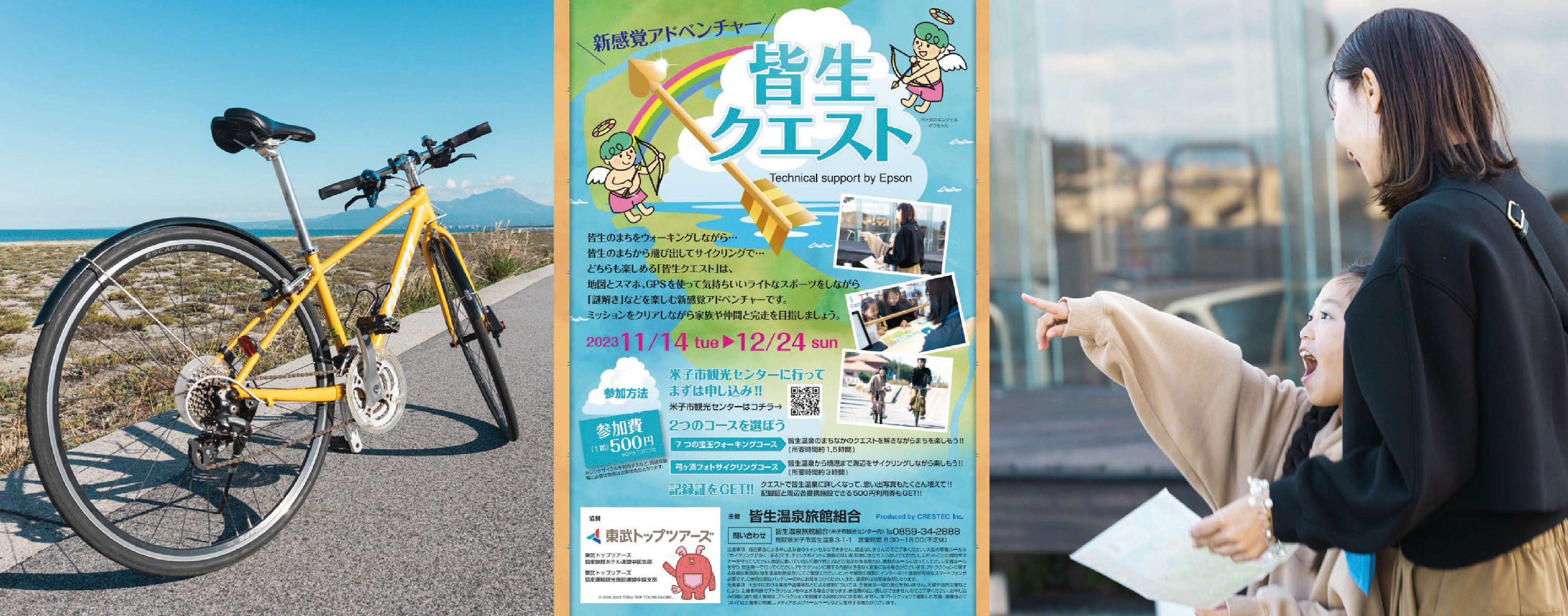 皆生温泉旅館組合(鳥取県米子市、組合長:伊坂 明)は、東武トップツアーズ株式会社協定旅館ホテル連盟中国支部(支部長:永山 久徳)・東武トップツアーズ株式会社協定運輸観光施設連盟中国支部(支部長:佐々木 雄三)の「強者(ツアモン)」事業(※)による助成を受け皆生温泉のまちや、海辺の周辺環境など既存の資産をこれまで以上に活かし、当地観光の高付加価値化を目指すため、『皆生クエスト』を開催します。