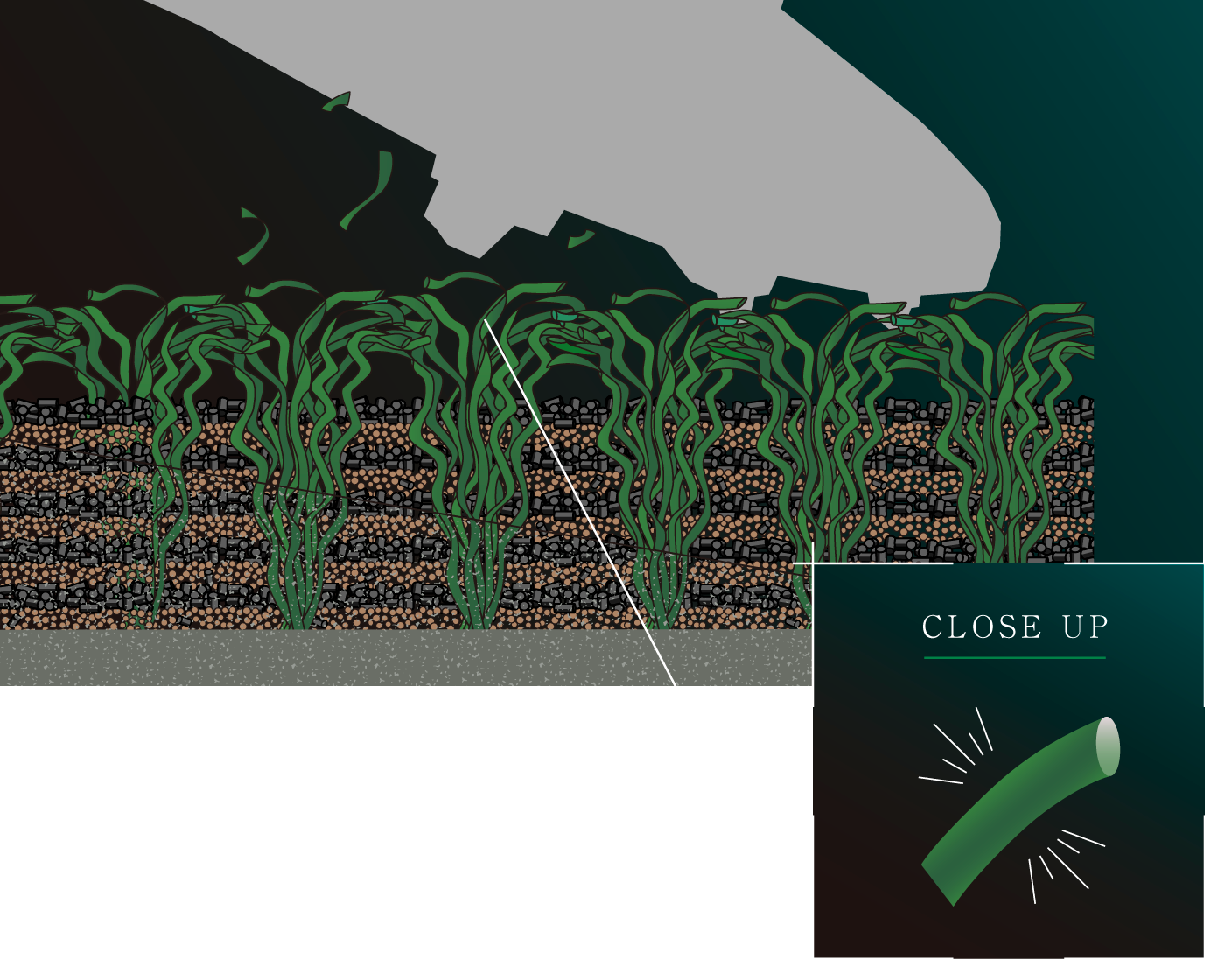 ミズノでは、人工芝のパイルを特殊捲縮加工(ミズノスパイラルテクノロジー)した「MS CRAFT」シリーズを販売しています。特殊捲縮加工することにより、パイルのちぎれを少なくして充填材のゴムチップ等の飛散・流出を抑制し、マイクロプラスチック流出の抑制に貢献します。