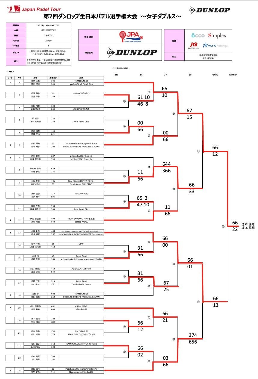 女子は今年初めて24ドローで開催。この一年でかなり女子選手の人口が増えたことが分かる大会となりました。また、関西や東海で活躍する選手たちも多く出場し、パデルの広がりを感じる大会となりました。