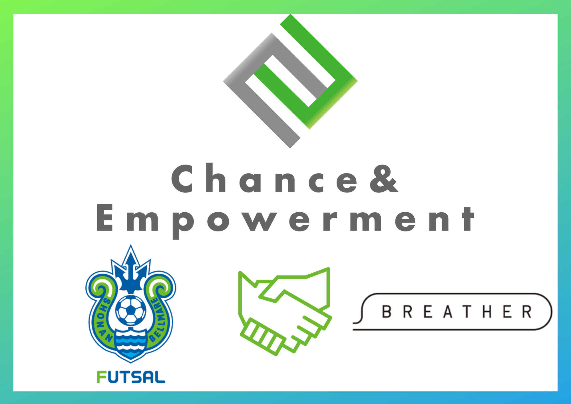 スポーツ領域のみならず、社会課題に対して、選手、スタッフ、ファンの方々が一丸となって社会貢献に取り組む湘南ベルマーレフットサルクラブ様と心の豊かな社会実現を目指す、「Chance&Empowerment パートナー締結」をさせていただくこととなりました。