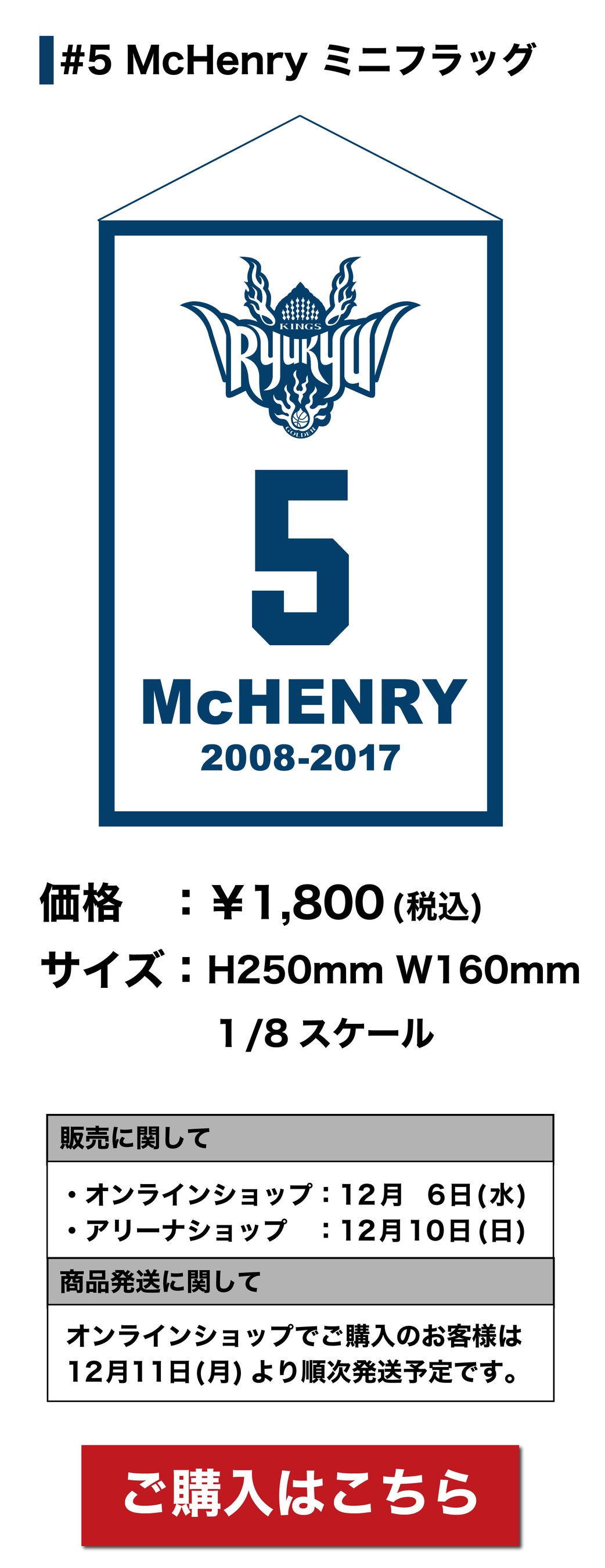キングス、そして沖縄への多大なる貢献をし続け、キングスのカルチャーを築く礎となったマクヘンリーアシスタントコーチの功績を称え、キングス在籍時の背番号「5」が永久欠番となったことを記念し「#5 McHenry レジェンドグッズ」を販売いたします。