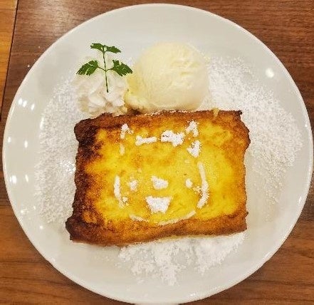 谷上駅近くのカフェ「ネルドリップコーヒー こーひい屋」において、粉糖で「しんちゃん」を描いたフレンチトーストおよび「てつくん」のカラーをイメージしたホットチョコミルクを販売します。