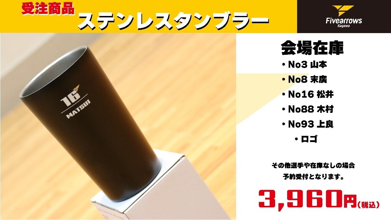 選手それぞれのネーム&ナンバーデザインがプリントされたアローズオリジナルタンブラーです!