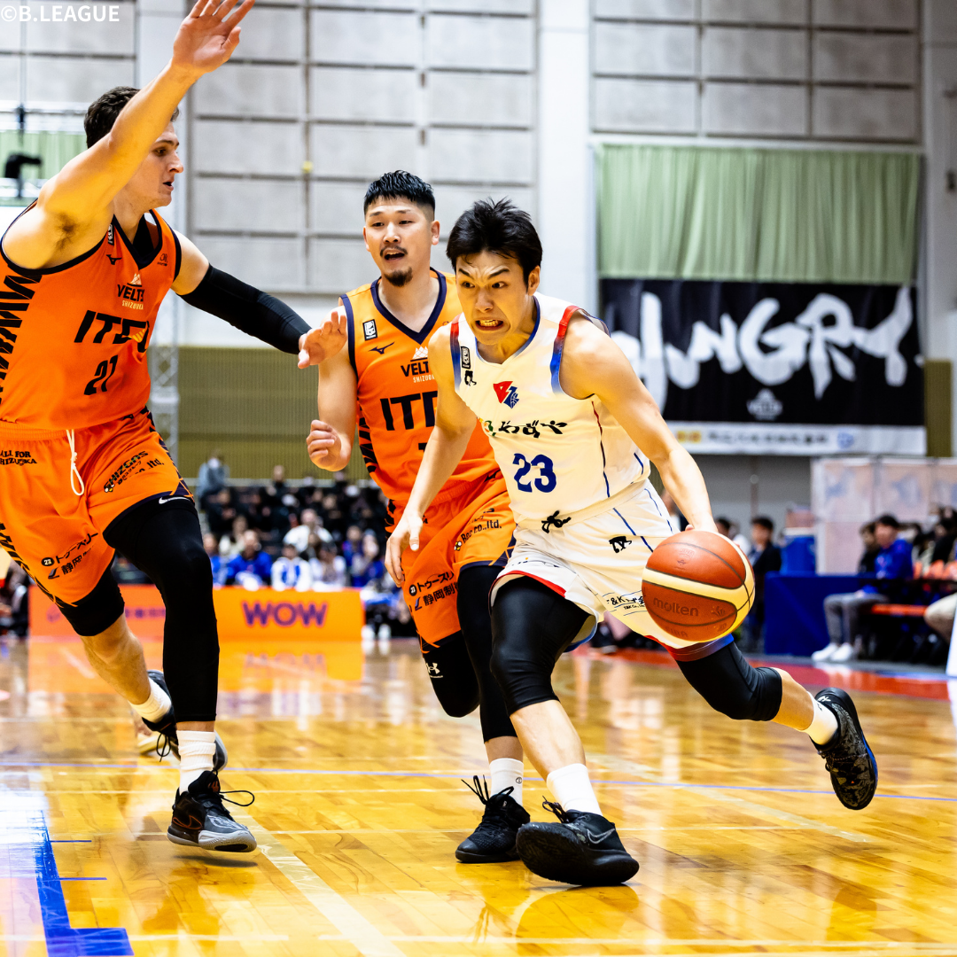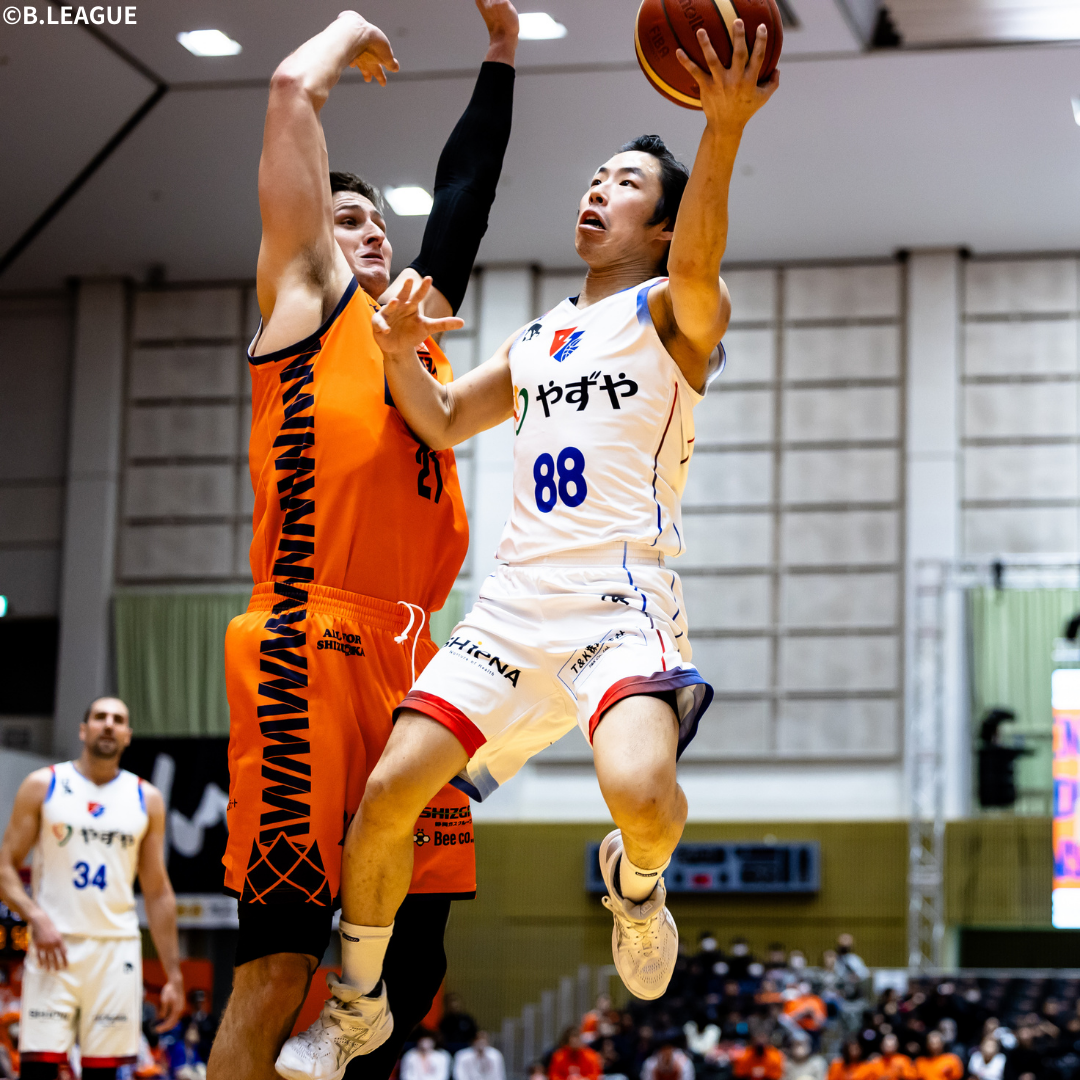 奈良戦でベンチ登録外となっていた重冨も後半から出場し、ディフェンスで存在感を見せ、村上とブライスのピック&ロールを成功させ、再び静岡を引き離す。静岡が後半1回目のタイムアウト後もブライスがインサイドで得点しや、パブロのオフェンスリバウンドから2ndチャンスも成功させる。
