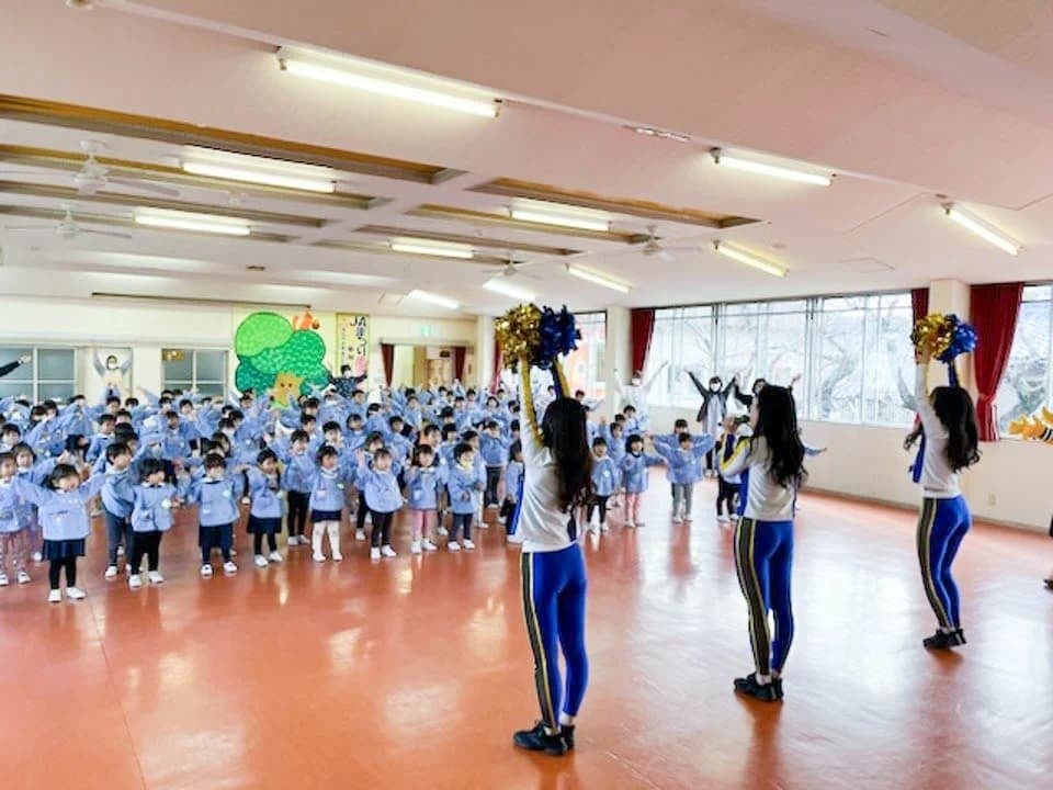 2023年12月11日(月)、シーホースくんとSuper GirlsのASAMI、SAHO、TOMOMIがともえ幼稚園(安城市)を訪問し、園児の皆さんと一緒にクイズやダンスを楽しみました。
