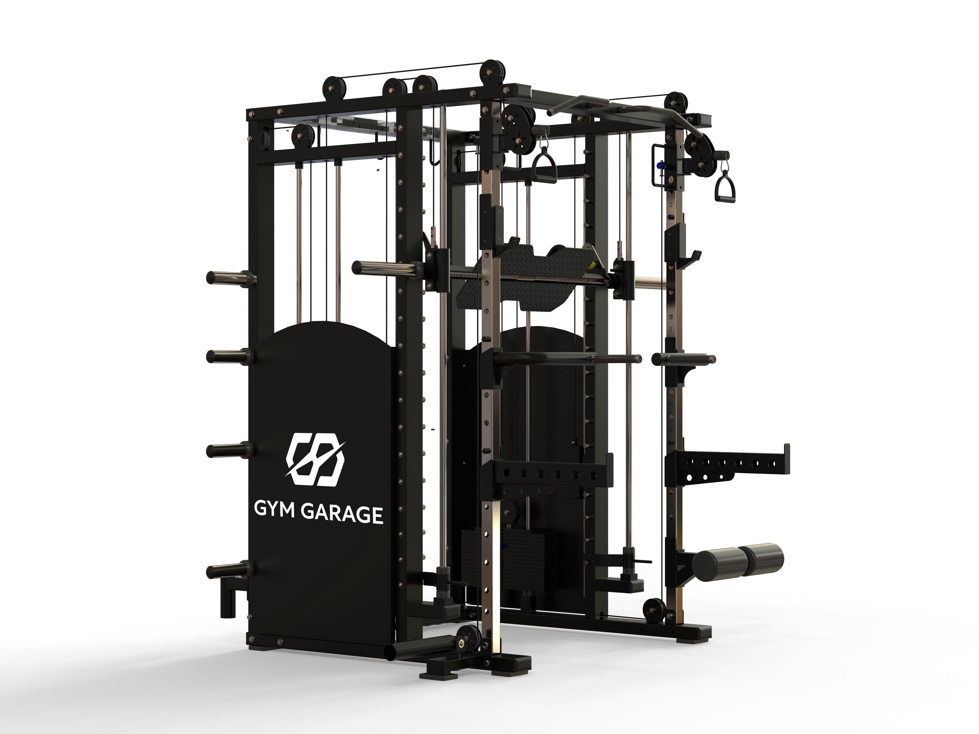 この一台に、パワーラック・スミスマシン・ハイロープリーを実装。