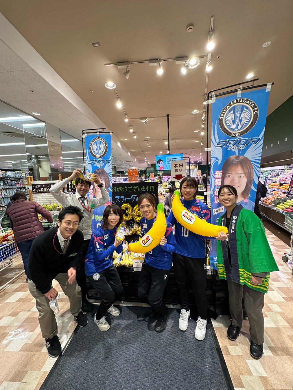 東京都世田谷区を拠点に活動する女子サッカークラブチーム「スフィーダ世田谷FC」(特定非営利活動法人スフィーダ:代表 稲田能彦)は、令和5年12月初旬に、2023 年のスローガンである「+1(プラスワン):地域への行動、アクションに更に 1 つの付加価値を追求」する活動の一つとして、「応援バナナ」(原料供給:株式会社ドール)の寄付金をサミットストア喜多見駅前店にて贈呈頂きました。