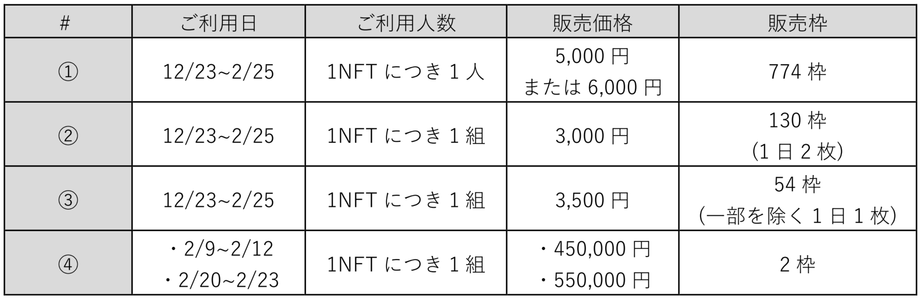※①の販売価格は、ご利用日によって異なります。