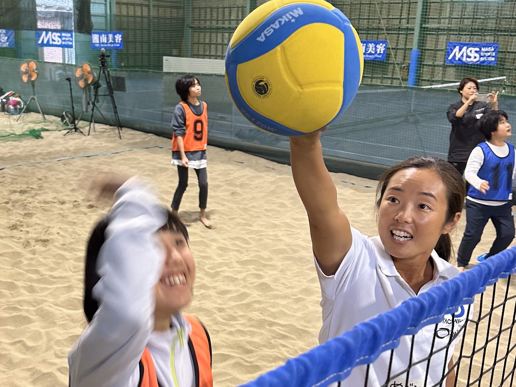 「最初はなかなかうまくできなかったことが、取り組むとすぐに吸収し成長してるのを見てびっくりしました。子供達がすごく楽しそうにボールを追いかけたり砂の上を走ったり飛び込んだりしてる姿がとてもかっこよかったです。ビーチバレーも子供も大好きなので、教えるとかはできませんが、私が単純に楽しかったです。笑」